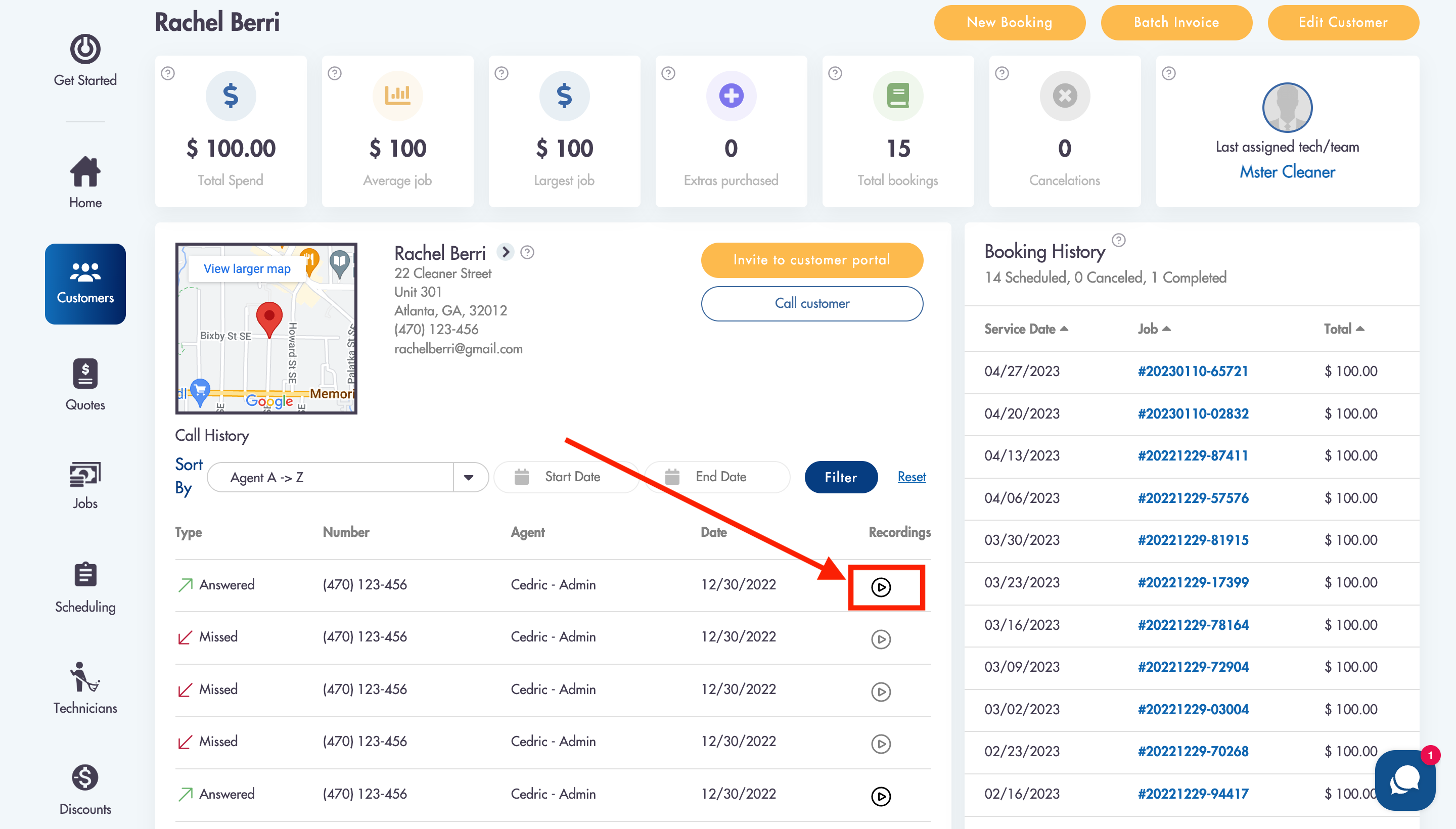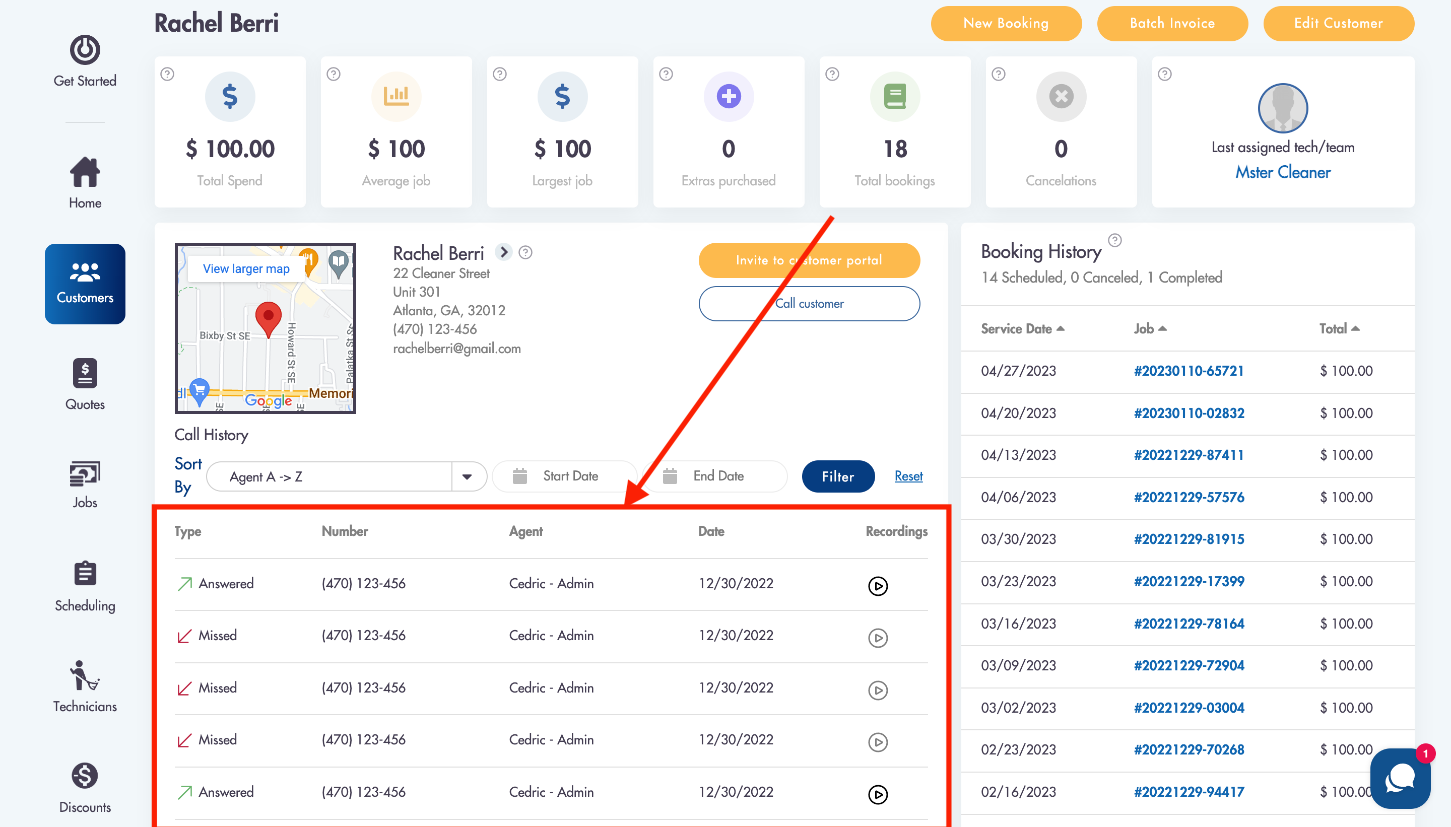 All registered calls will be tracked and recorded under the customer's profile in the Call History section.
