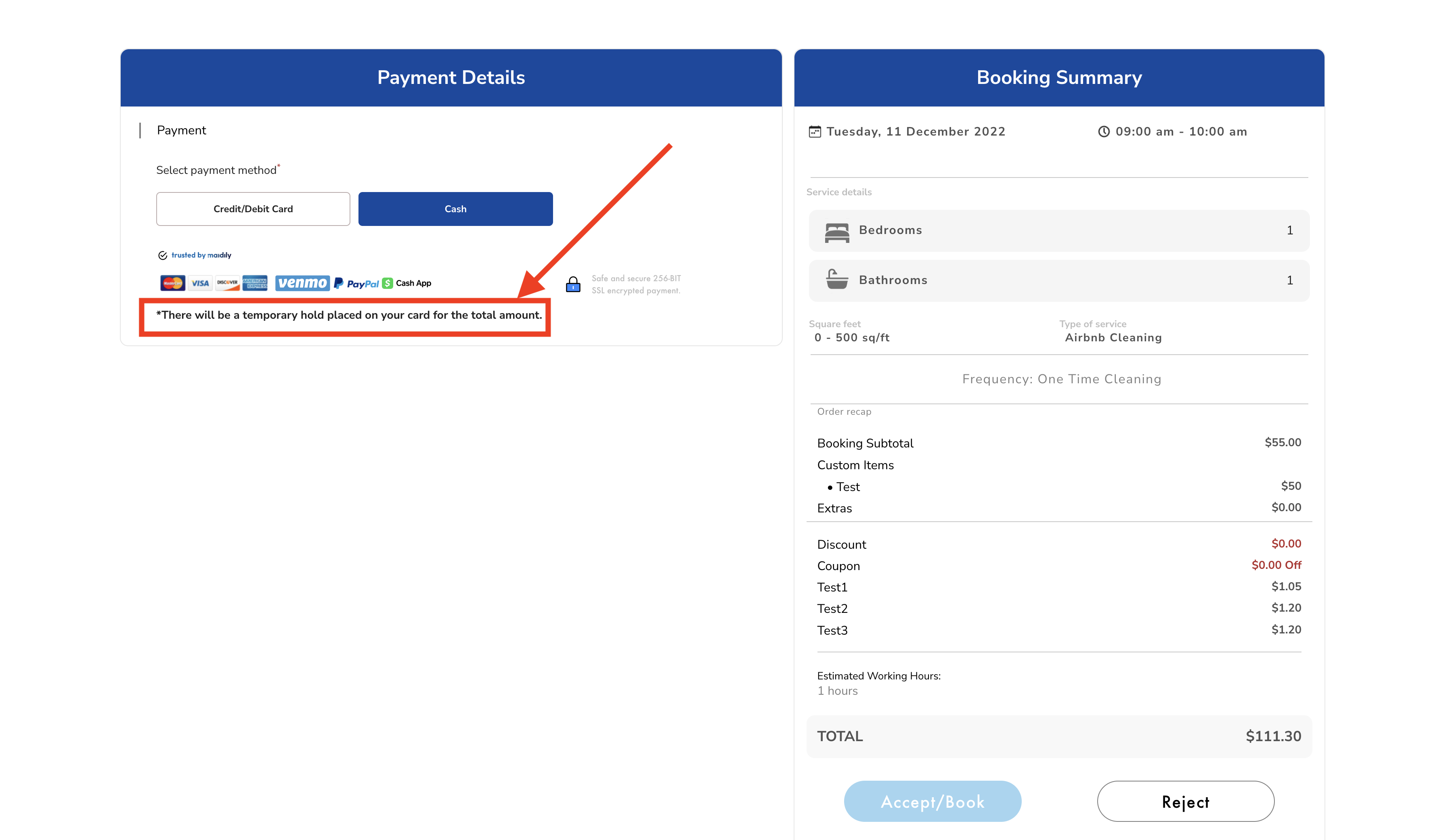 Turning on Payment preauthorization will automatically place a hold on any new jobs being creating inside of Maidily or any new jobs that come in through the our online booking form.